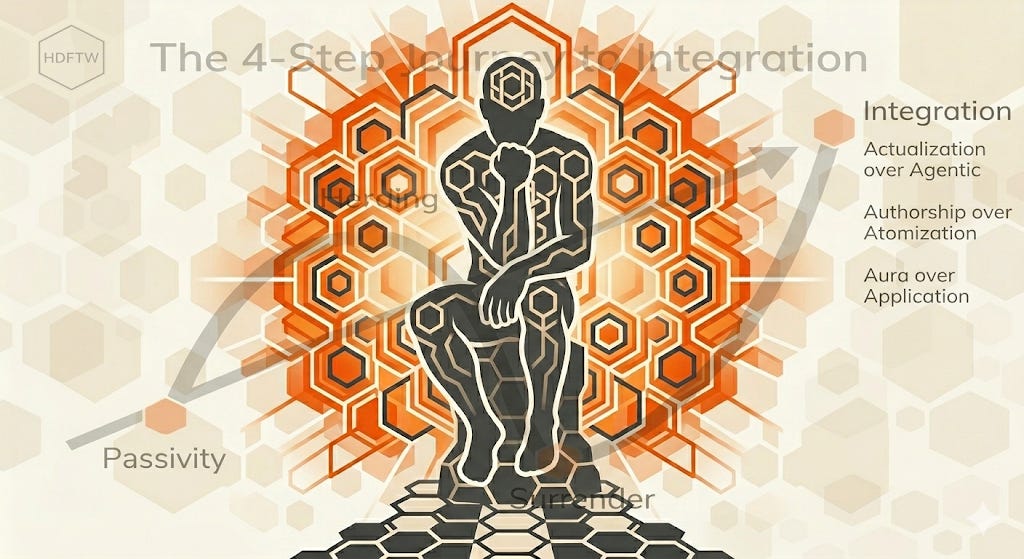 That’s the authorship question. And if actualization is the inward turn, authorship is where that turn meets other people. Which leaves one more piece, and it’s the one that ties it all together.