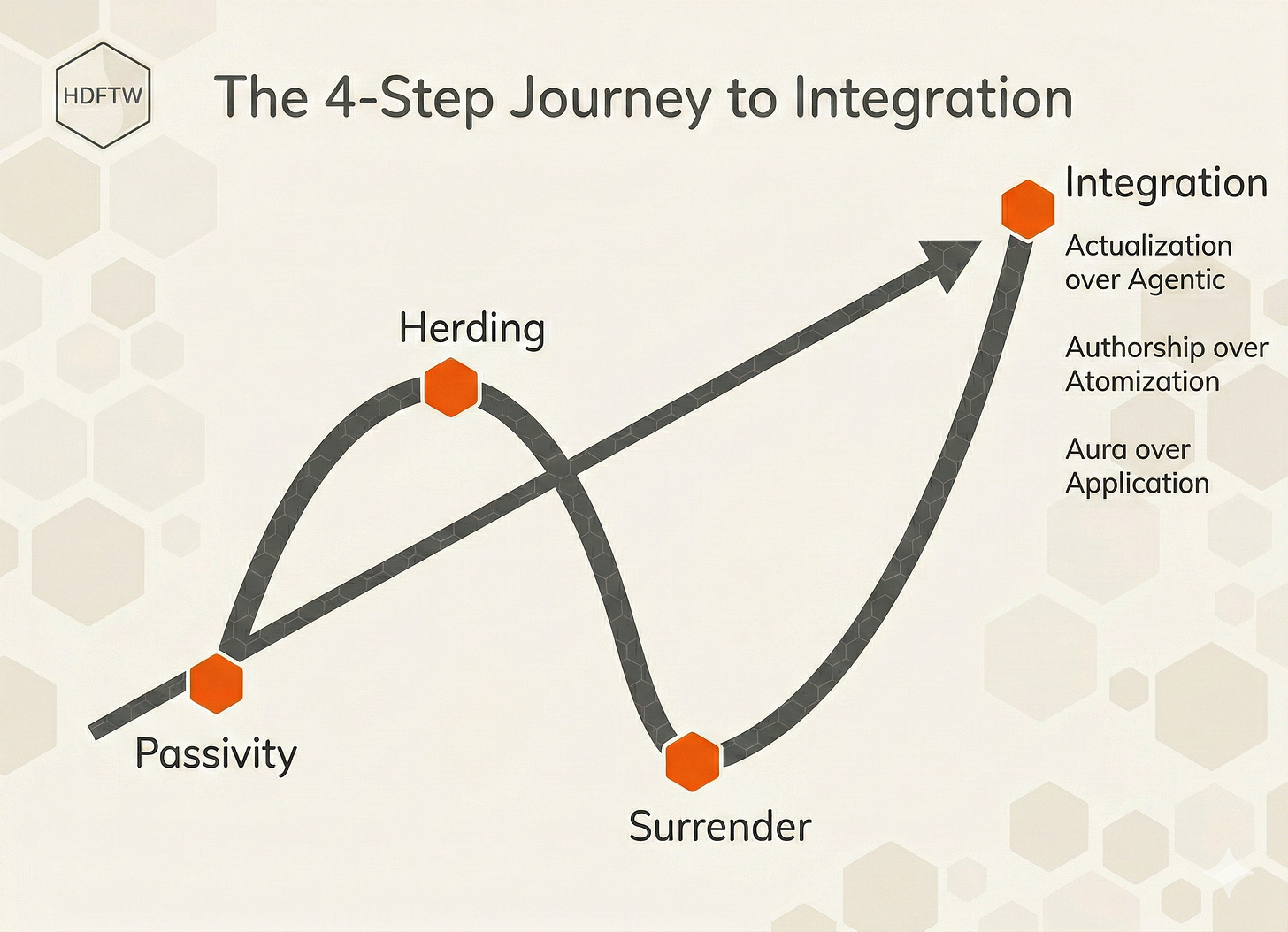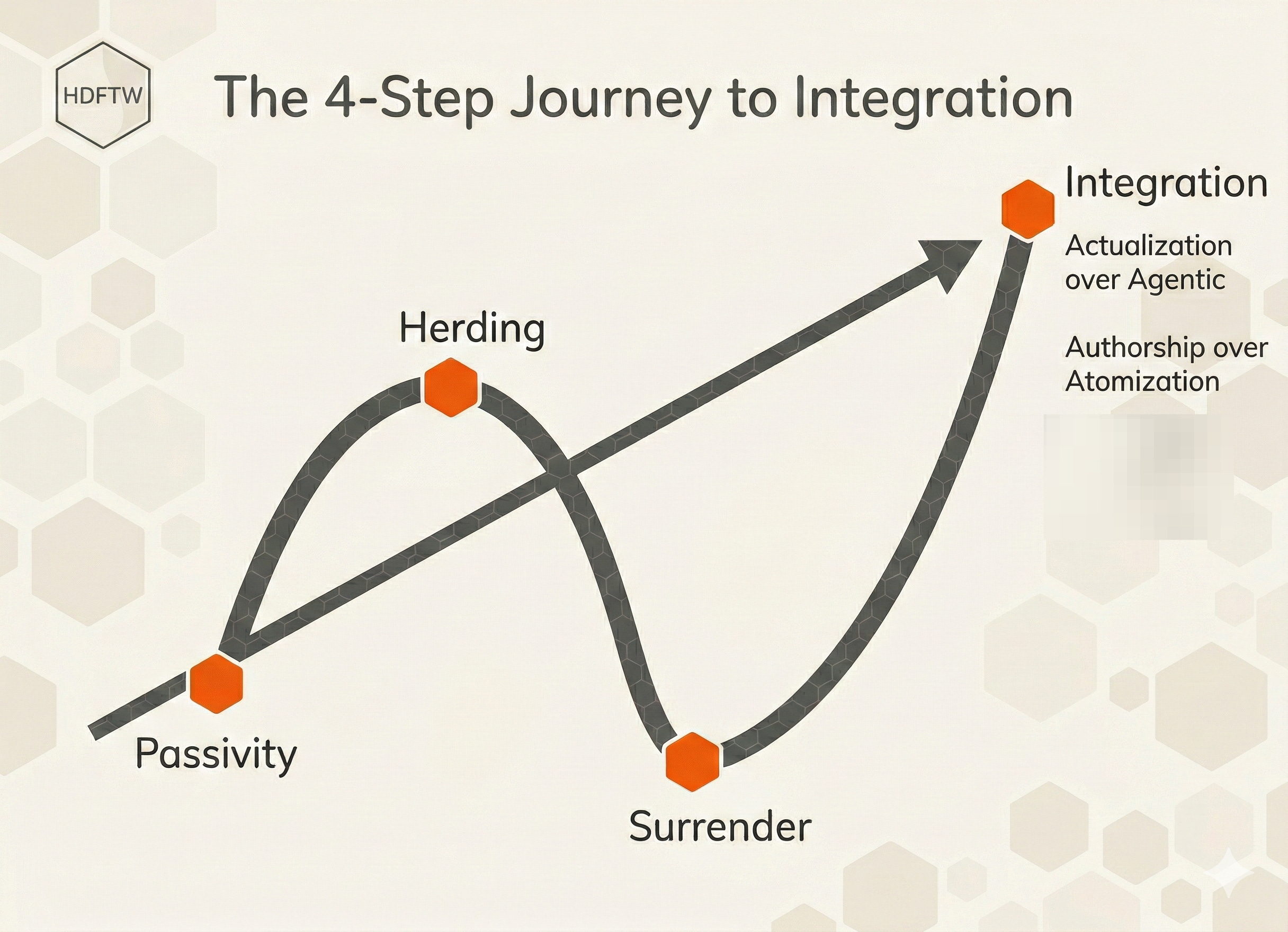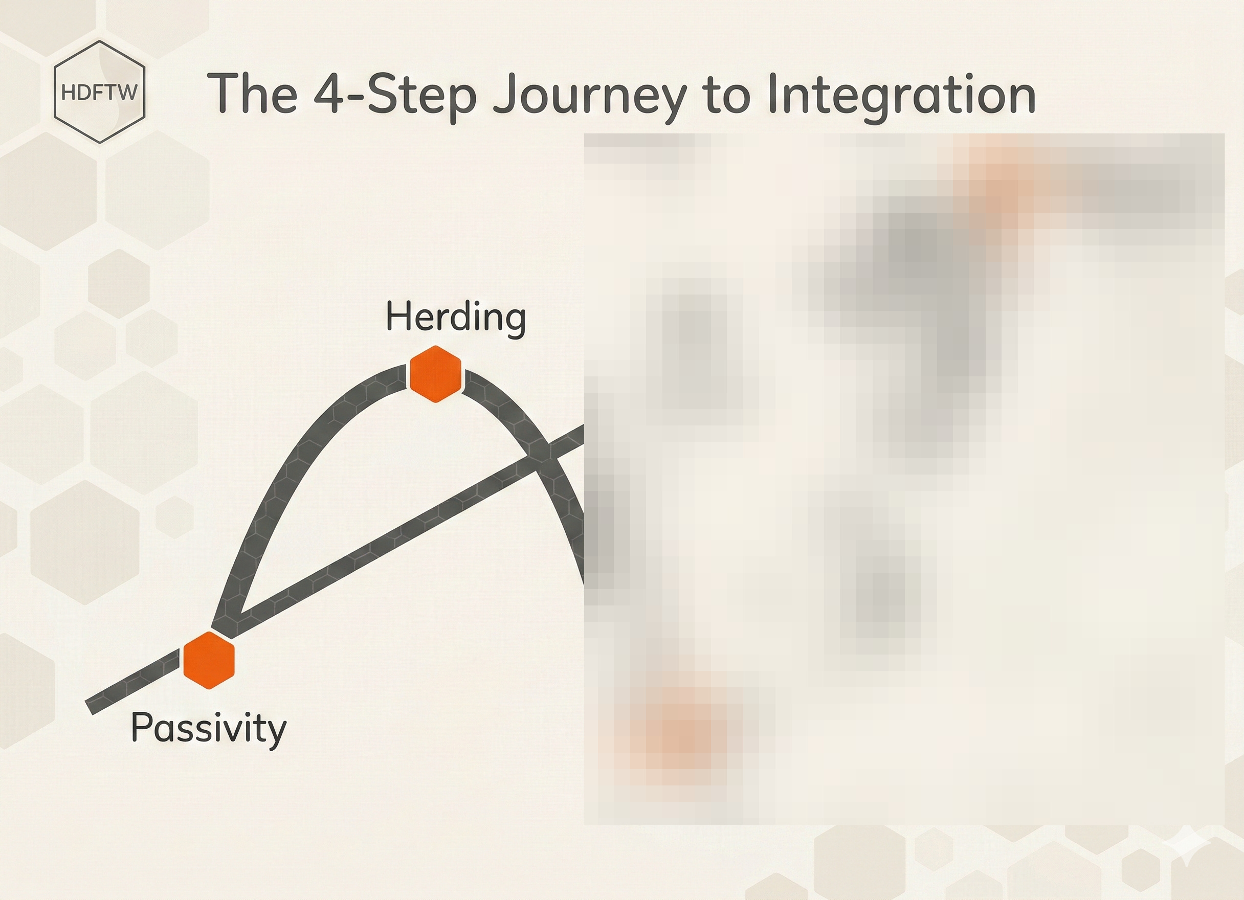 Herding has something real in it too. The impulse to move, to seek, to not sit still, that’s energy. The problem was never the energy. It was the direction. Herding pointed it outward, toward the crowd. Integration points it inward, toward the wiring.
